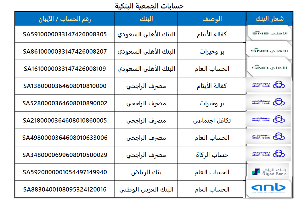 الحسابات البنكية المعتمدة لحسابات جمعية الإخلاص